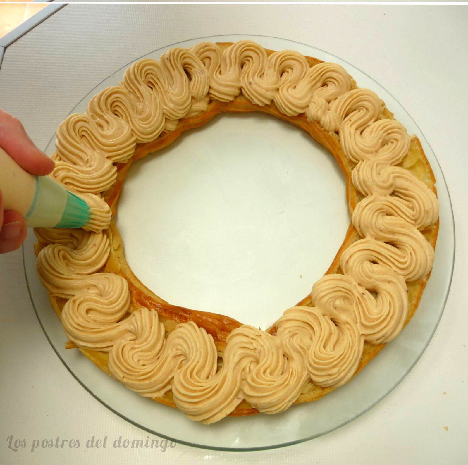 La crema parís Brest es una combinación entre crema pastelera y mantequilla, enriquecida con pasta de praliné de avellanas o almendras. Es sedosa, rica y con un sabor tostado inconfundible.